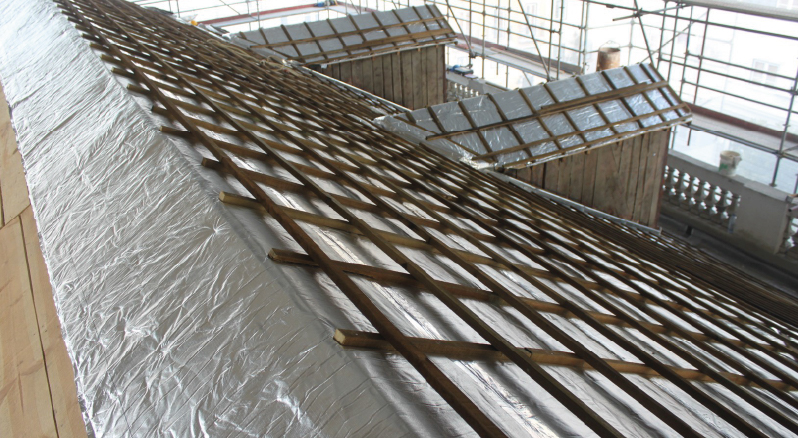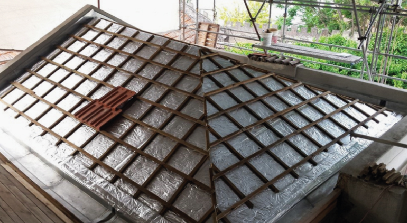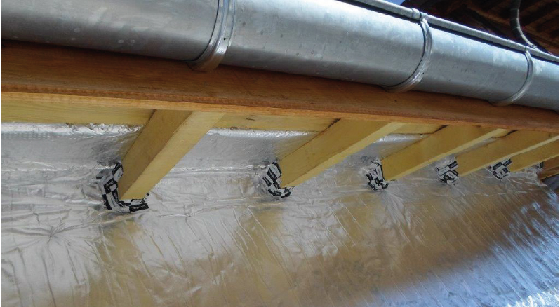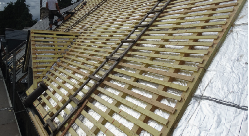 - Isolation hiver : nappe haute densité isolante en continu au-dessus des chevrons